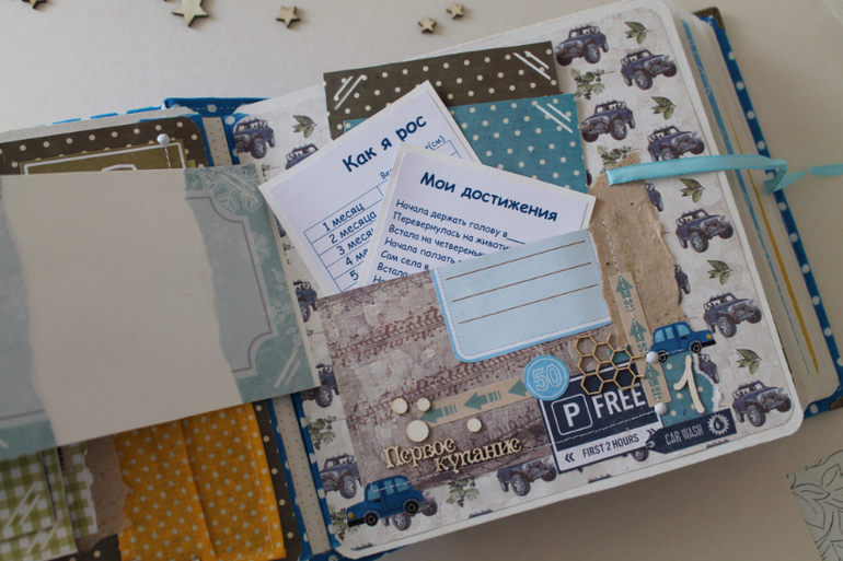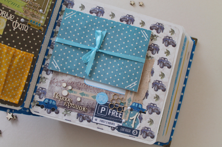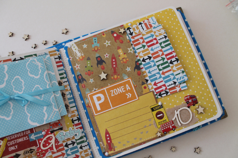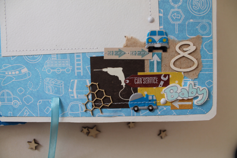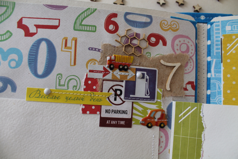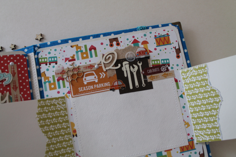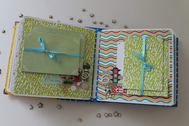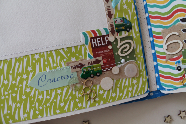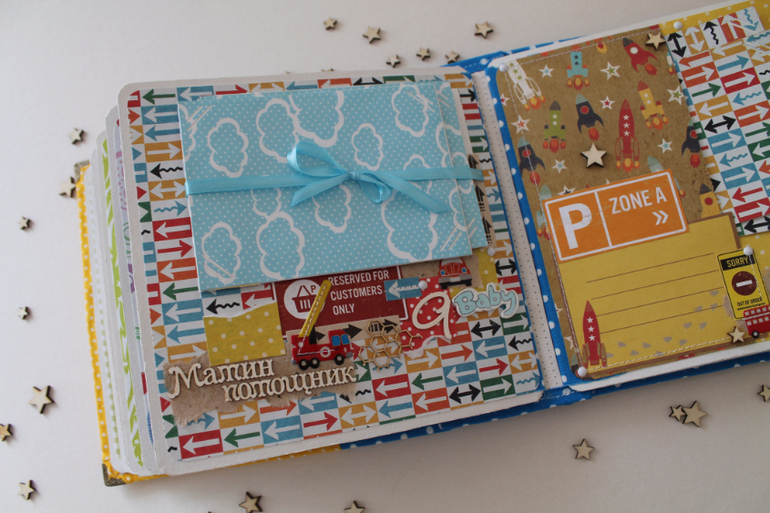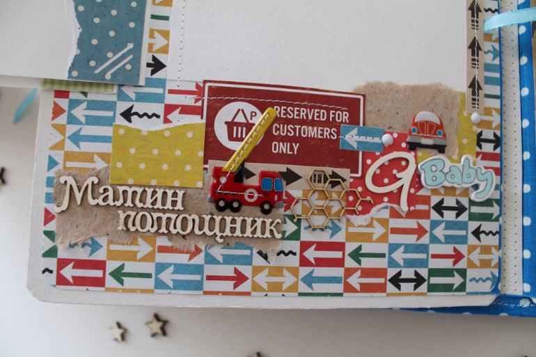 Классный альбом!Вроде и мелкие детальки, а цепляют взгляд и начинаешь рассматривать) тоже искала бумагу с машинками, но толком нет ничего яркого..нашла суперский набор, а украшалок к нему нет( тоже буду вырезать