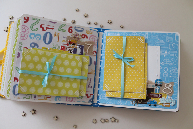 Альбомы ДетскиеАльбом 20x20 см на 7 разворотов (14 страниц) с машинками,так и не нашла какого-то путевого набора,чтобы сделать весь из одной коллекции,поэтому сборная солянка,но в целом, по-моему, получилось очень даже ничего.Рассчитан на 80 фотографий с рождения до года.Альбомчик уехал в Казахстан к своему маленькому голубоглазому обладателю.Смотрим?