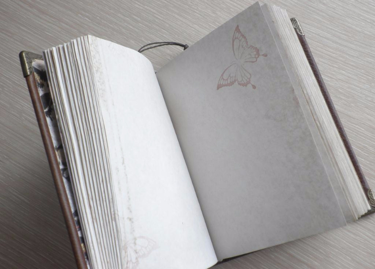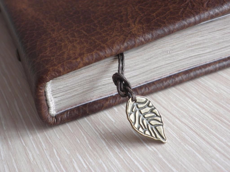 Блок укреплен каптальчиком, куда ж без него)) Закладка-листик, как мне кажется,прожилки на нём схожи с узором на коже))