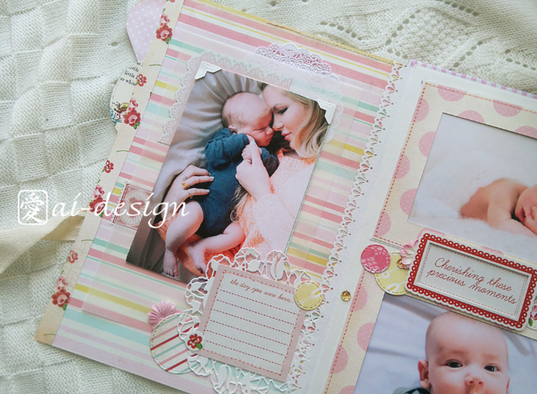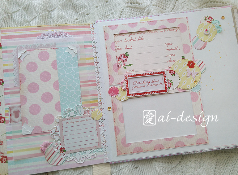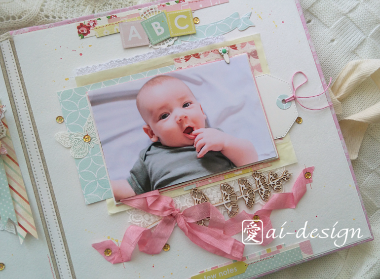 Делала его из шикарной бумаги бренда Carta Bella - "Baby Mine". Альбом рассчитан для маленькой девочки от 0 до 3 лет. Так как в нем нет привязки к месяцам первого года жизни, альбому чудесно подойдут фото с тематических фотосессий, например с дня рождения, Нового года, или просто лучших фото малышки. Размер 29х29см, 5 разворотов - 10 страниц, Вмещает в себя 18 фото стандарта 10х15см, и 7 фото 7,5х10см (половинки стандарта), плюс много карточек для записей.
