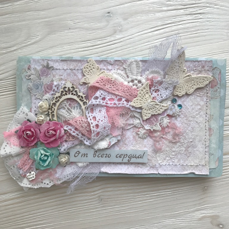 Очень понравилось лепить бабочки, и я таки решилась и впервые попробовала текстурную пасту, акриловую краску и штампинг (к сожалению, его не видно, он внутри конвертика). Мне понравилось! Буду пользоваться еще =)