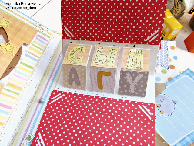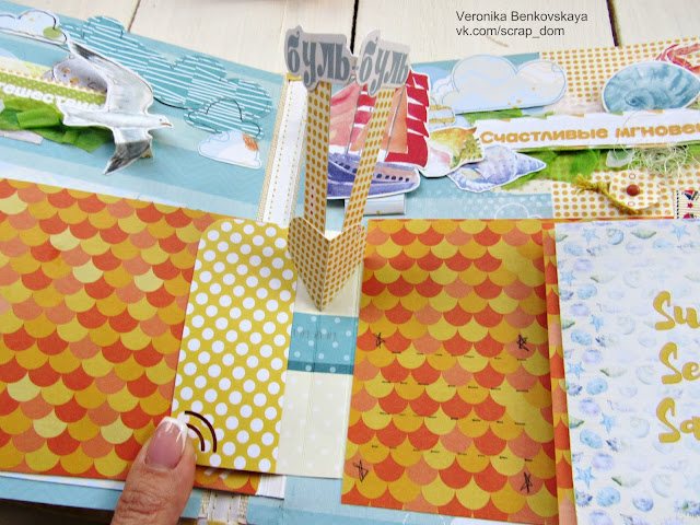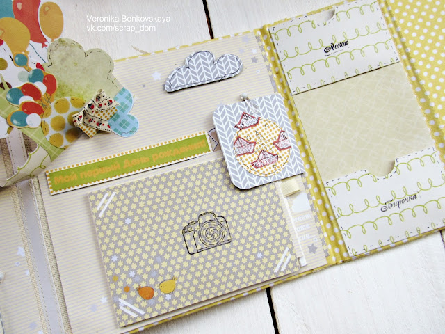 А вот и еще один интерактивный элемент - колесо обозрения. Я уже когда -то писала, что рядом с нашим домом есть парк, куда мы ходим гулять с сыном; и вот когда я думала над "прогулочным" разворотом, мне захотелось сделать именно этот аттракцион.