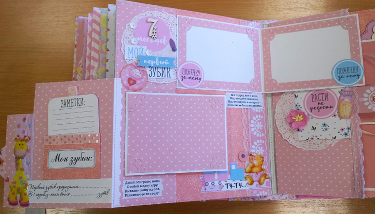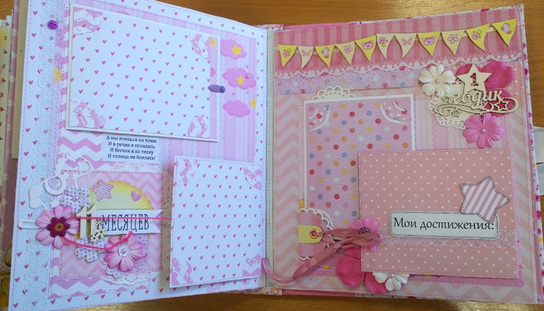В процессе работы постепенно вырабатывала единый стиль альбома, чтобы все развороты смотрелись органично.