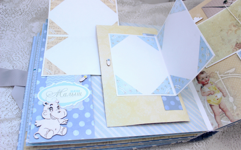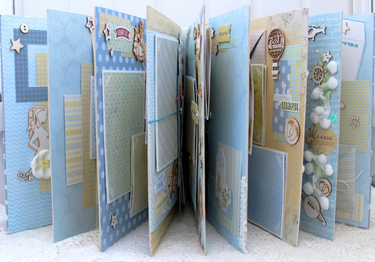 Альбомы ДетскиеВсем привет)) Дорогие рукодельницы, все уроки по созданию большого альбома для малыша отсняты и вы в любое время можете записаться на онлайн - курс. Работа очень объемная, формат альбома 30х30, 16 декорированных страниц с различными откидными элементами и конструкциями, рассчитан альбом на 150 фотографий.