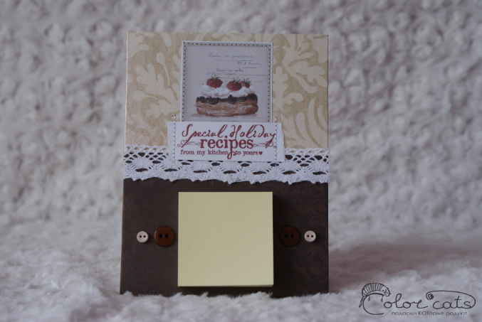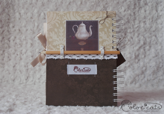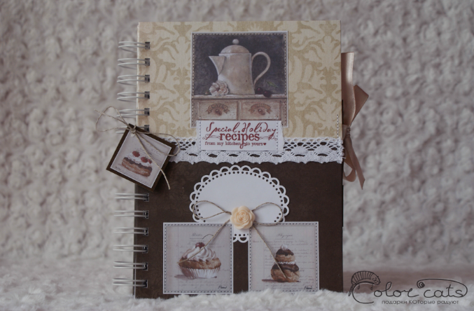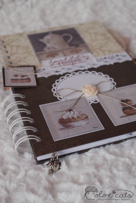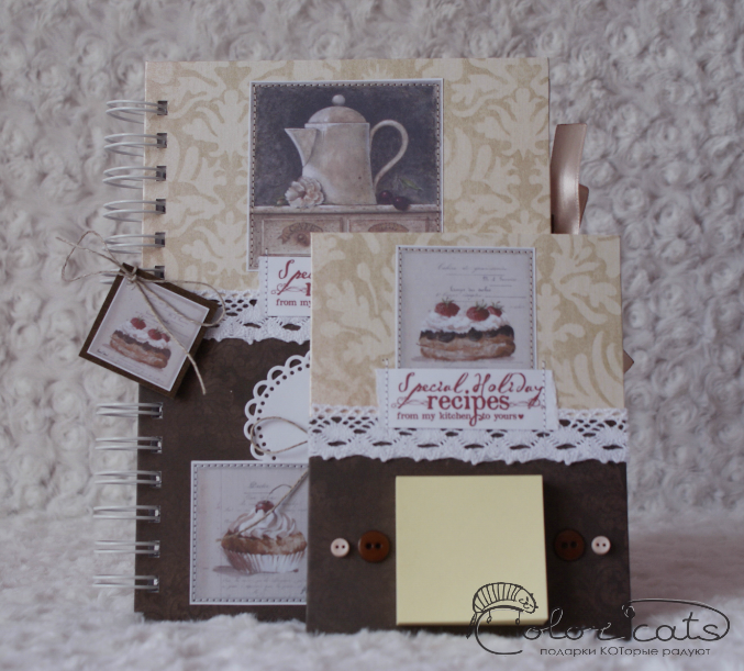 БлокнотыВот такой вкусненький наборчик сделался у меня на заказ для Ирины с ЯМ. Тут у меня две новые фишечки, которых не было раньше - это мне Ирина сама предложила сделать. первое - это закладочка-шнур с подвеской, как в блокнотиках девочки делают, а второе - это на задней обложке появились две резиночки, в которые можно вставить ручку или карандашик. А в остальном все как всегда - формат А5, 200 линованых страничек, 4 разделителя: "Закуски", "Горячее", "Десерт" и "Разное". Желаю всем приятного аппетита просмотра)