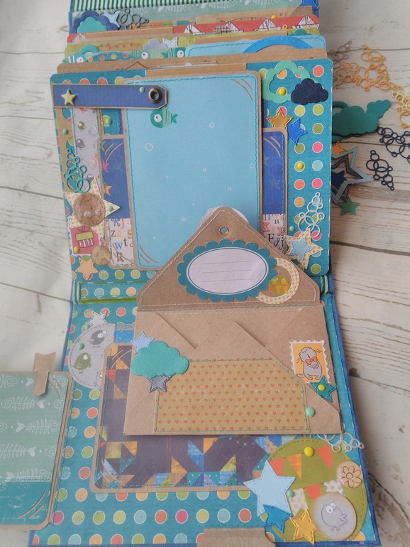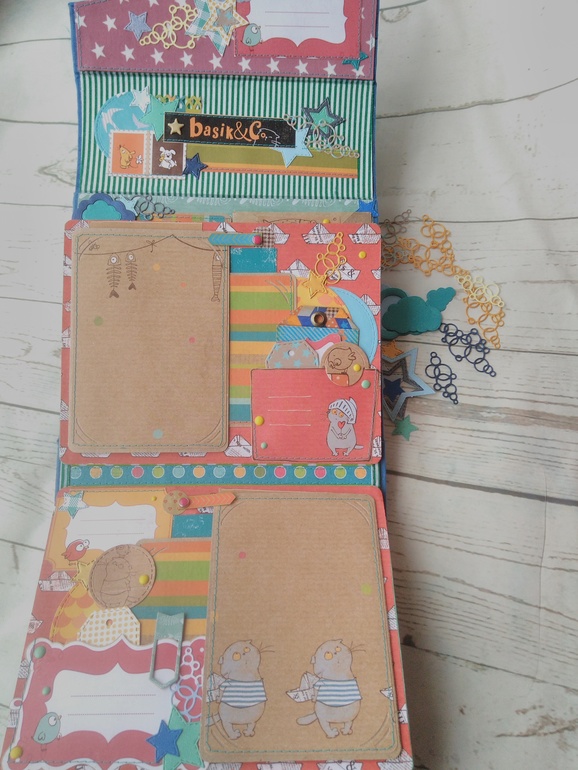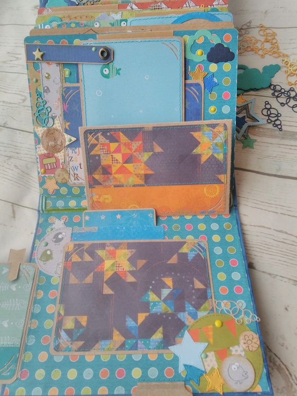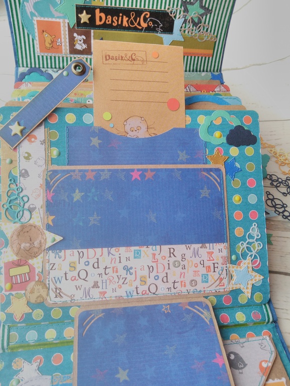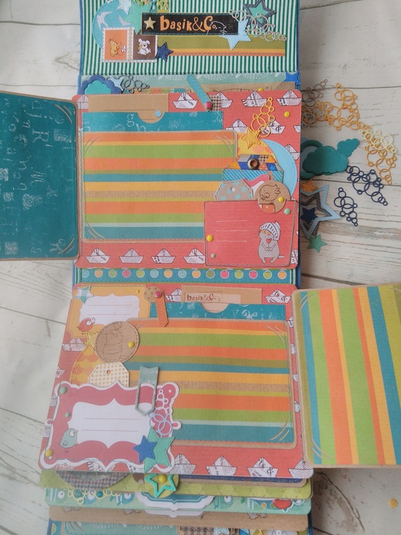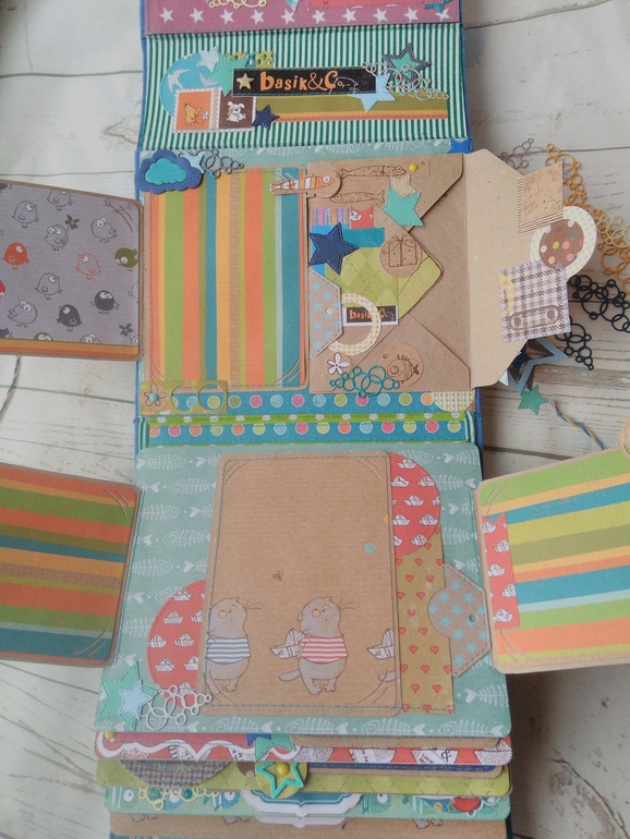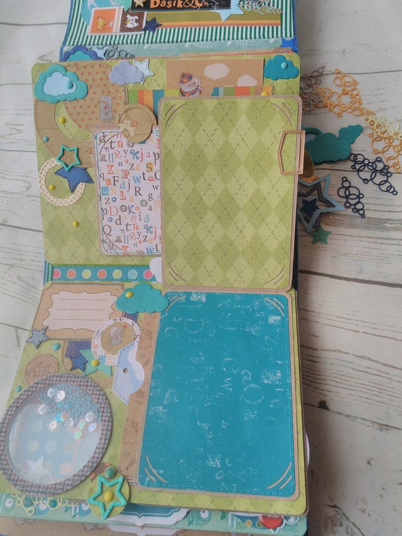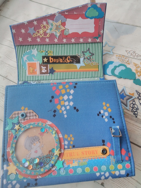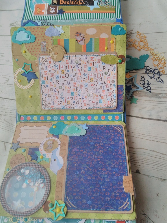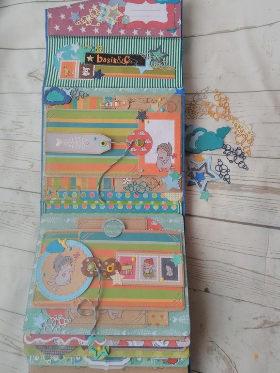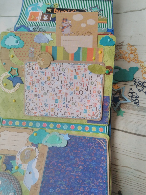 Альбомы ДетскиеТот случай,когда долго размышляешь...В какой технике тебе поработать-шебби или Винтаж...И в руки попадает Басик и всё само складывается...)))Альбом универсальный на 40 фото 9*13 и множеством кармашков для доп.фото и тегов,прекрасно разместятся фото как первого года,так и детский сад,выпускной,день рождения) и свободен...