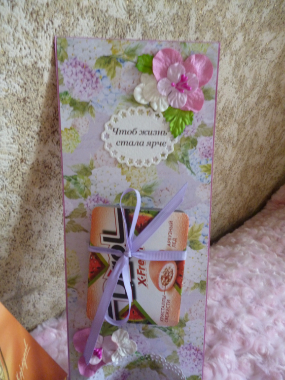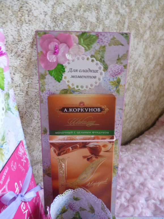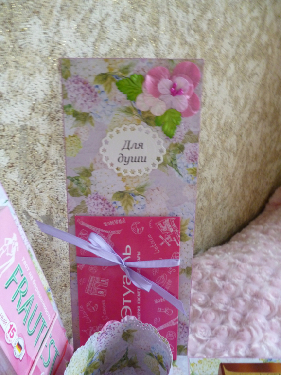 Закрытую не успела сфоткать) Она снаружи тоже в сиреневых тонах с огромным сиреневым бантом на крышке)