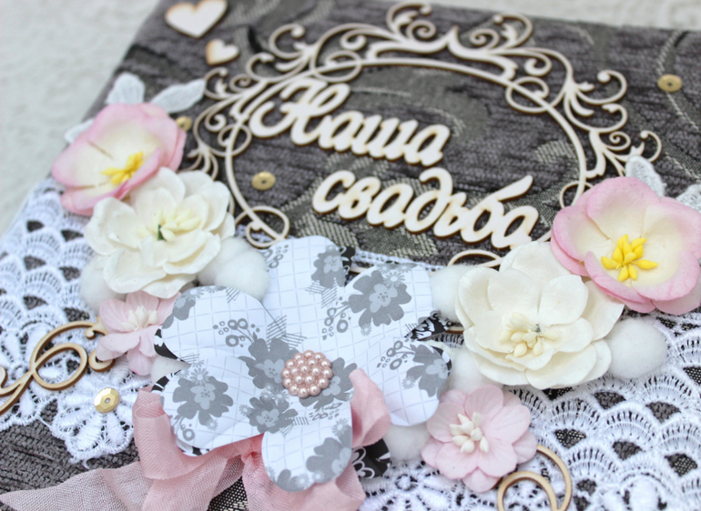 Альбомы СвадебныеВсем привет) Хочу поделиться с вами свадебным альбомом. Формат альбома 20х20, 8 декорированных страниц, рассчитан на 40 фотографий. В альбоме использовалась бумага ручной работы, множество кружева и цветов. Альбом есть в наличии.