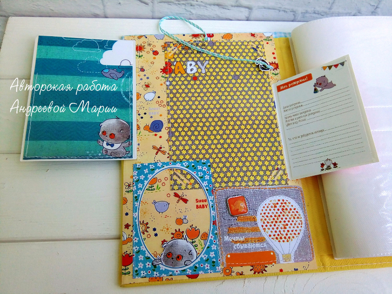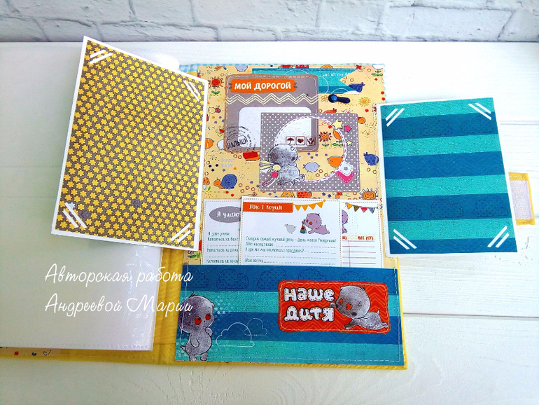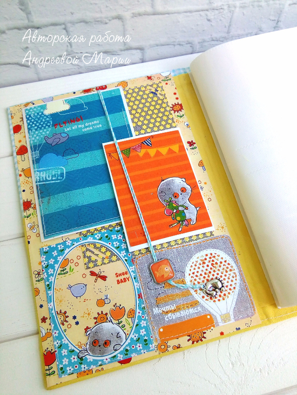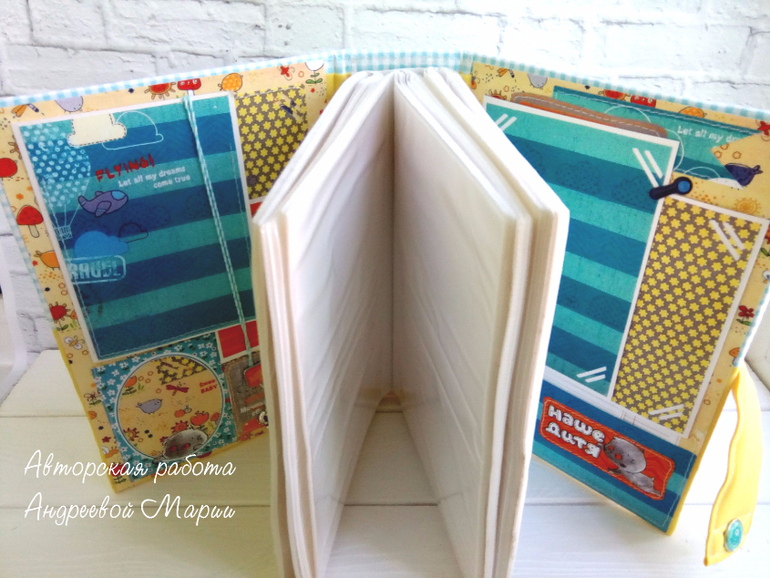 Альбом детский. Формат 20 на 25 см. Внутри файлы для 200 фото. Полностью оформленные форзацы с подложками для фото, местом для бирочки и тэгами для записи.