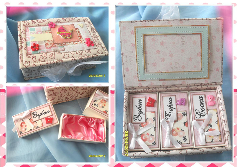 Коробки, шкатулки, комодыДобрый день, рукодельницы и гости ББ. Что-то я совсем закружилась с заказами и забыла выложить набор из двух шкатулок-сокровищниц для двойняшек, которые я сделала ещё в апреле. Ну лучше уж поздно, чем никогда. Шкатулочки небольшие, очень похожи друг на друга. Для мальчика и для девочки двойняшек.