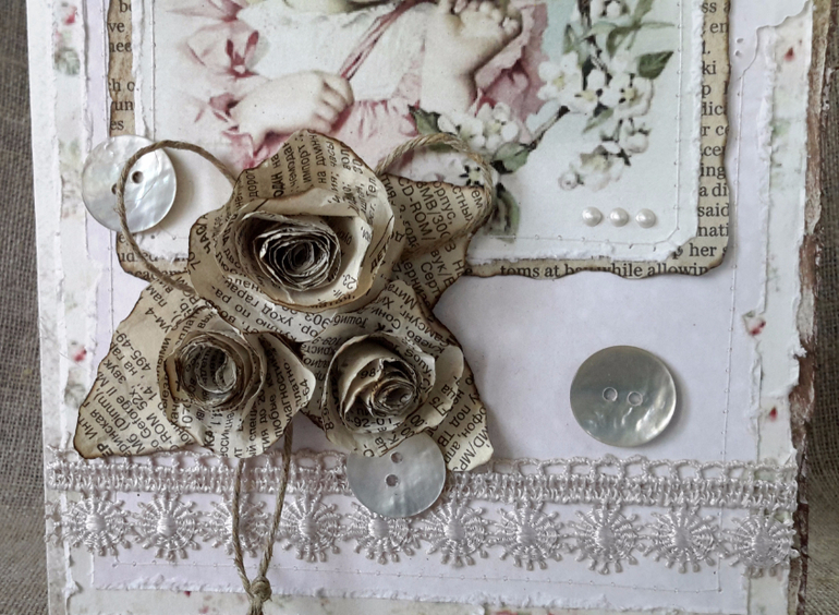 Открытки, приглашения, визиткиМилая и нежная открытка с винтажной картинкой и розами из газеты, чтобы выразить свою любовь, не прибегая к сложным речевым оборотам).