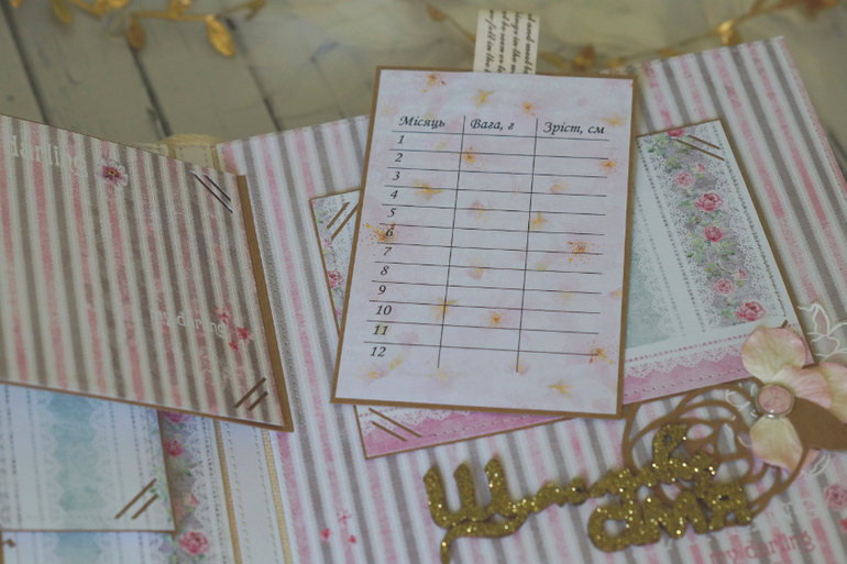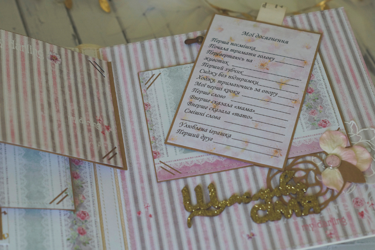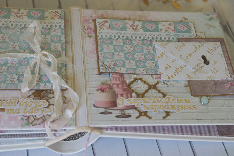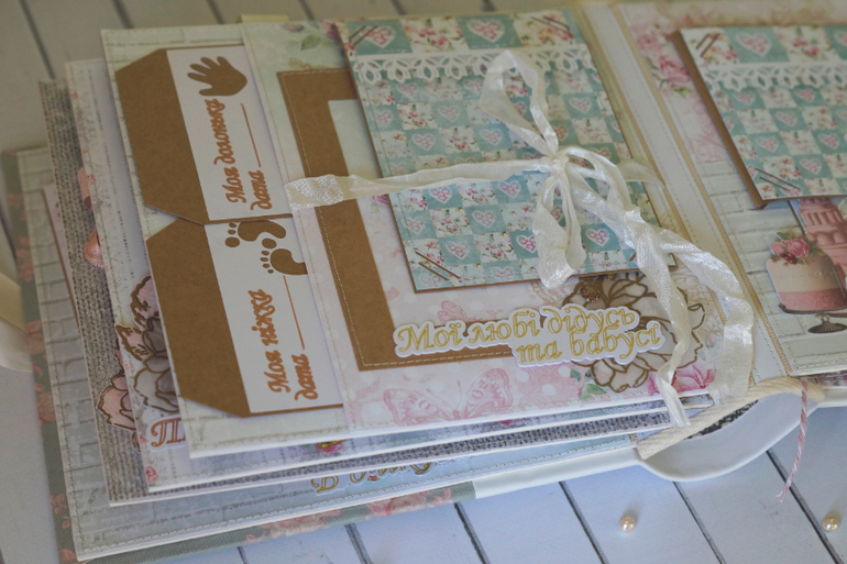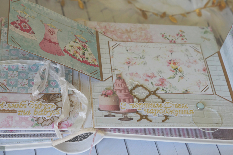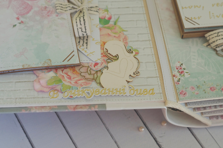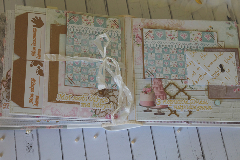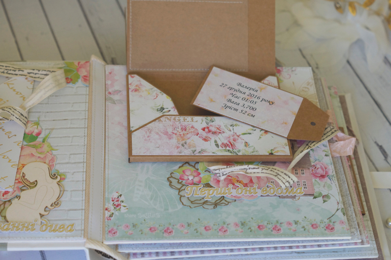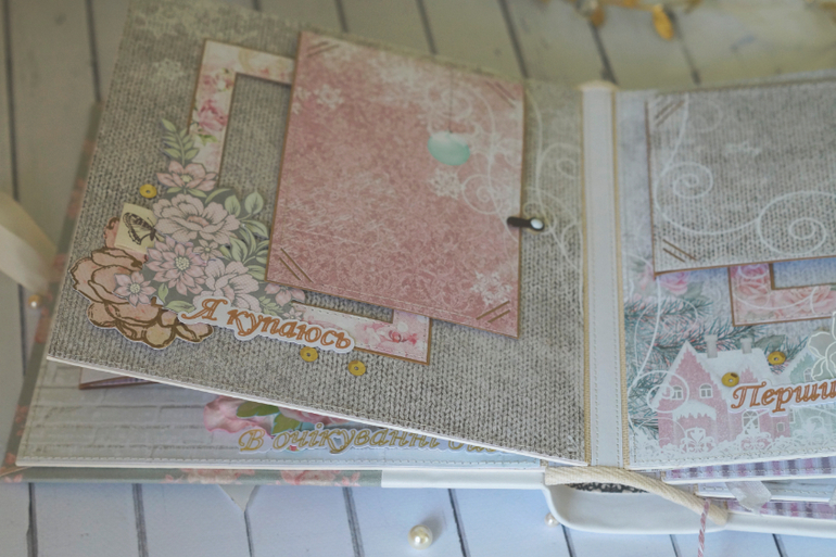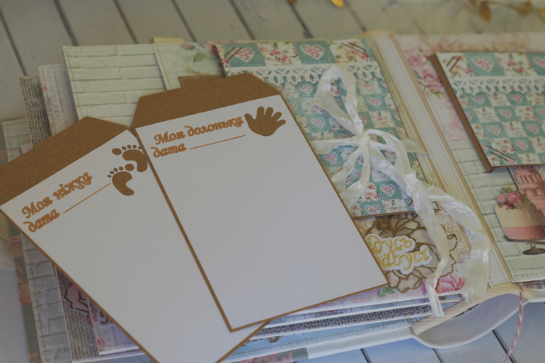 Этот альбом можно по праву назвать "альбомом-сокровищницей". Кроме ярких и красивых фотографий малышки, он будет хранить все самые дорогие маминому сердцу мелочи.