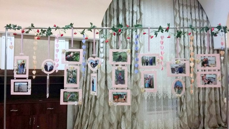 Это подруга сфотографировала, как они выглядели в зале) Сердечки на нитке тоже я делала)) Правда на них должны были вешать фото, но переиграли)