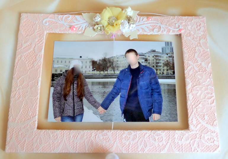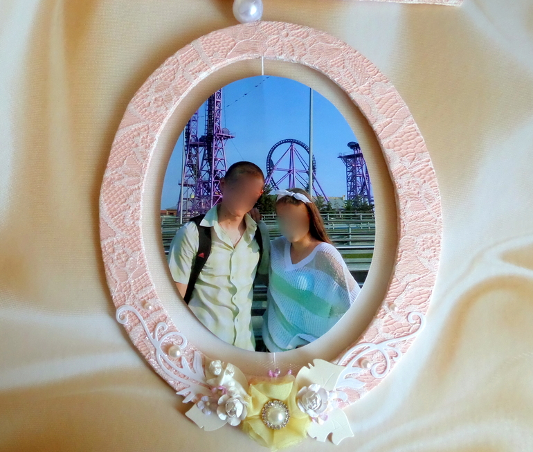 тут почему-то кажется, что рамка кривая,хотя это не так)) из-за кружева наверное)