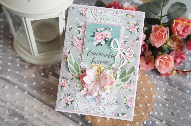 Всем доброе утро. Редко бываю здесь, а сколько красивых работ в ленте. Свадебный сезон продолжается. В работе использована бумага и высечки от "Фабрики Декору".