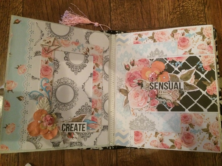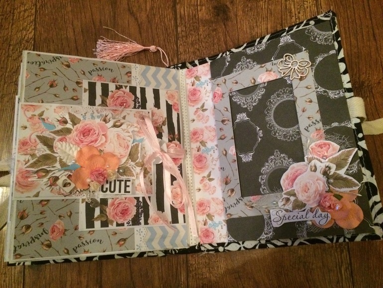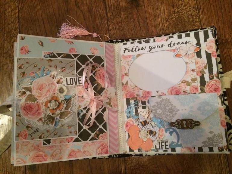 Альбомы для женщин (девушек)Альбом формата 17х21см, 4 разворота. В альбоме использовалась бумага Sensual Lovе от Фабрика Декора, а также два листа вырезок от этого альбома, много чипборда, розочек. Вмещает в себя 40 фото различного формата и 5 конвертов для памятных записей и дополнительных фотографий.