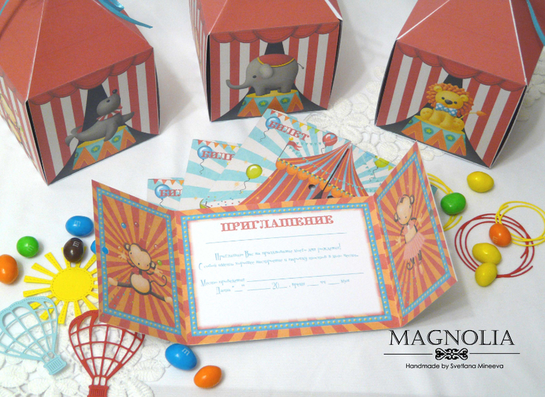 Цирк приехал! Или приглашения и подарочные коробочки на яркий день рождения