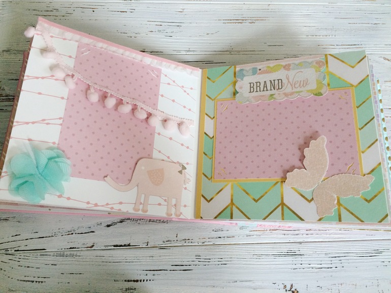 Альбомы ДетскиеВсем привет. Вот такой ми-ми-ми альбомчик получился, обложка из ЭКО кожи , весь бумажный декор в альбоме сделан мной в одном экземпляре) 20 страничек (10 разворотов) , на резиночке. Вместить можно более 60 фотографий . Преобрести можно прям сейчас)
