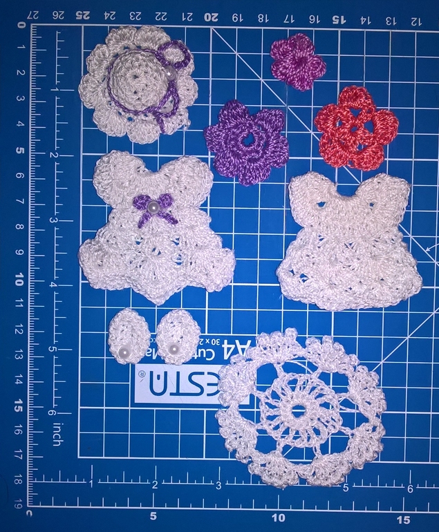 Феички, как вы используете вязанные элементы декора? Очень мне понравились украшения крючком, и конечно же я их связала! Салфеткам я применение нашла, а вот как выглядят работы с платьицами, шляпкой, и тапочками?!! скиньте пожалуйста мне фото ваших работа, в интернете выдает поисковик только сами украшения:(