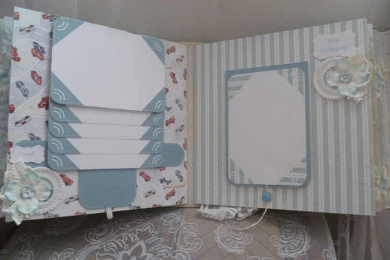 Альбомы ДетскиеДобрый день! С первым днем зимы Вас! Давненько я здесь не появлялась. Да и не делала ничего. Счастье улыбнулось! Заказали три альбома, и все для мальчиков. Первый сфотографировать не успела, так как закончила утром в 5:45!!! Завязала бант и пошла на работу. Фото этого альбома тоже не айс! В 17:00 надо было отдавать, а закончила в 16:30. Ну это как всегда, дотянулась. Альбом: 25*25, 9 разворотов, 52 фото 10*15. Впервые делала конструкцию POP AP "Твист" пересмотрев кучу мастер классов. И впервые делала тканевый переплет. Пухляш получился - 12 см!