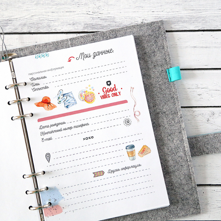 кармашки вместительные на форзацах. Кисточка-закладка.
