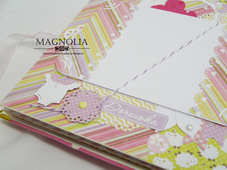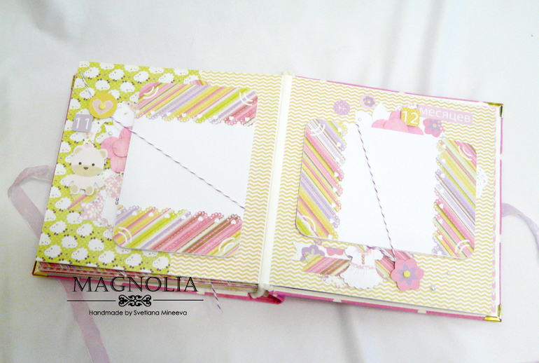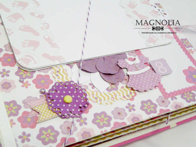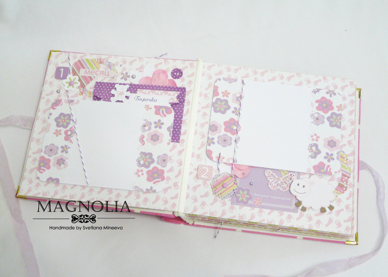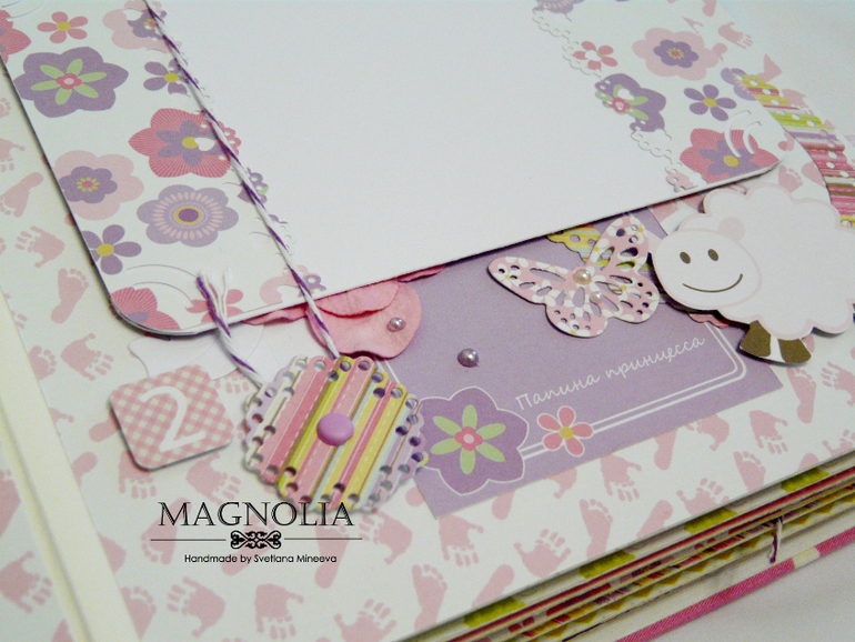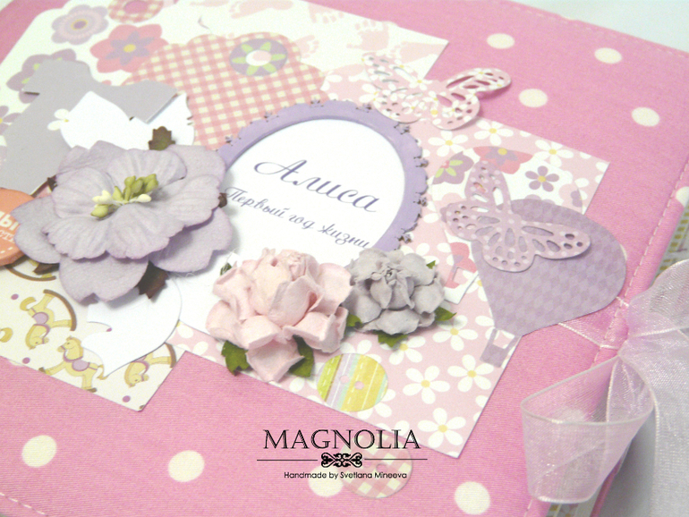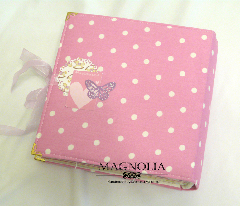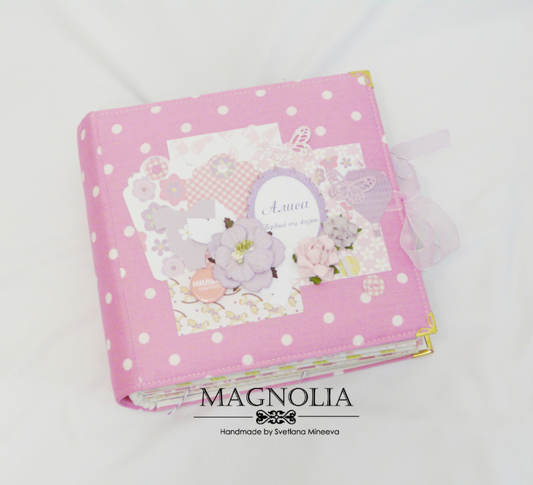 Сегодня я с детским альбомом для малышки Алисы. Формат 20*20 см, объемный бумажный переплет укрепленный тканью, обложка мягкая тканевая из хлопка. Завязывается на шифоновые ленты. В альбоме 8 разворотов или 16 страниц, вмещается 74 фотографии формата 10*15 см.