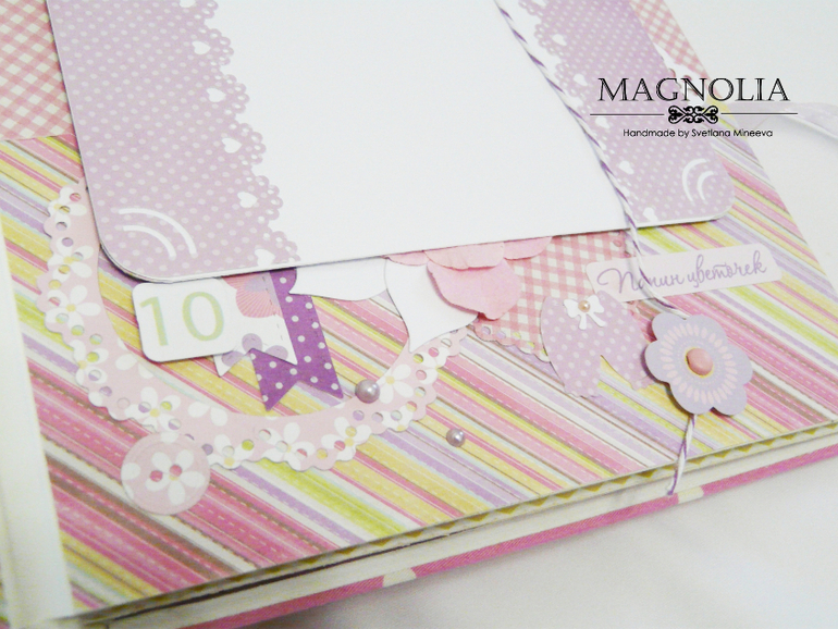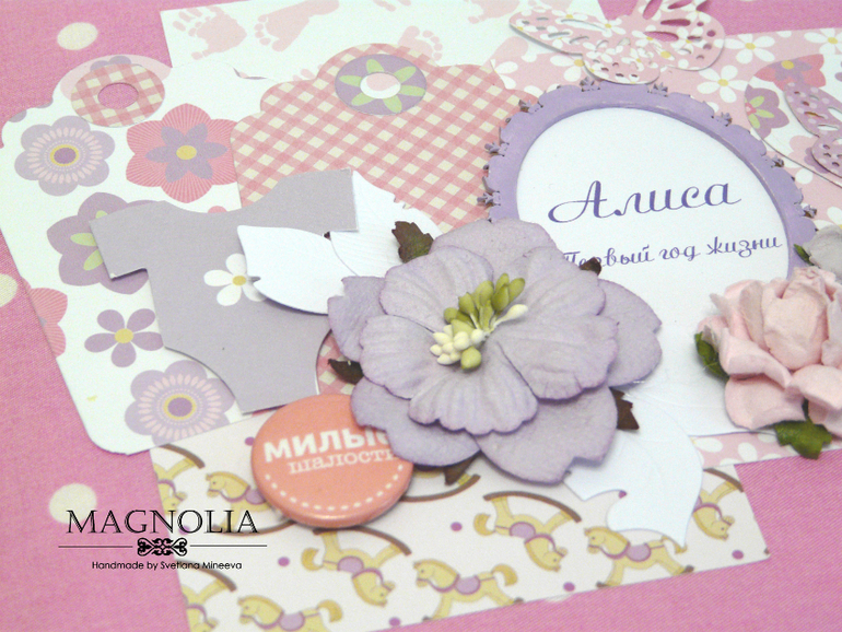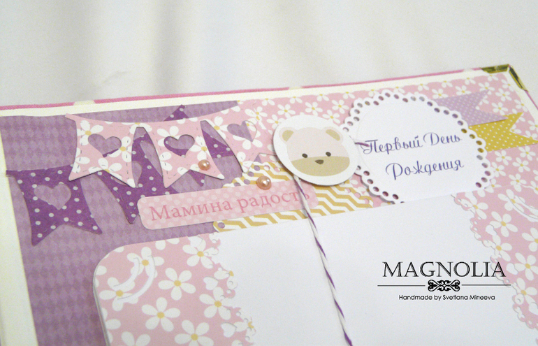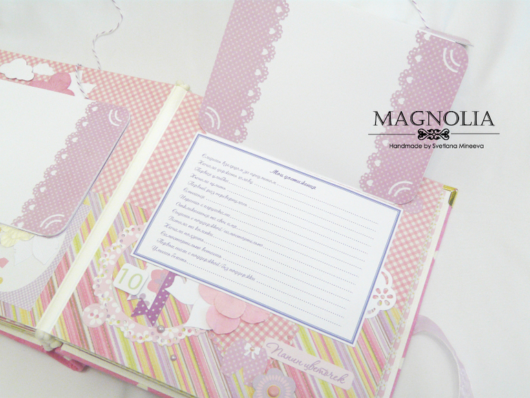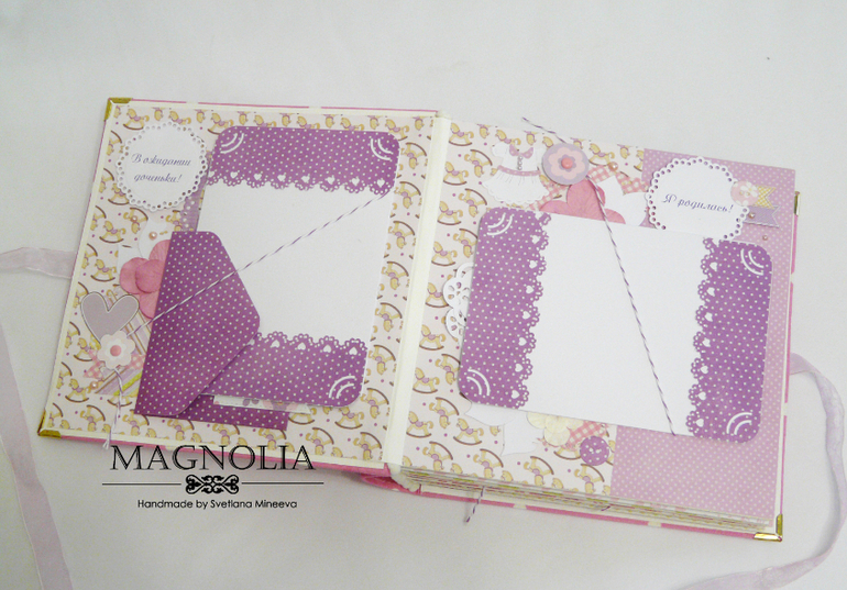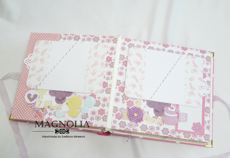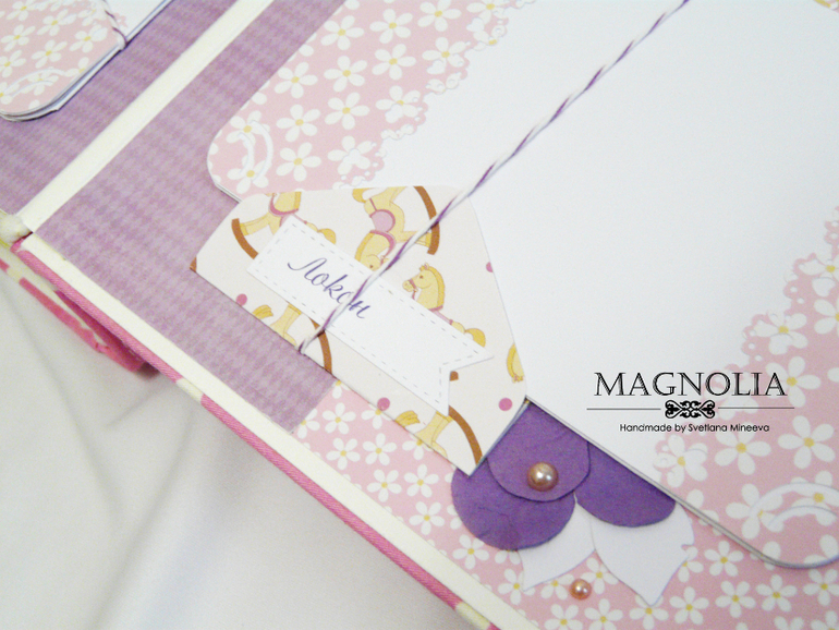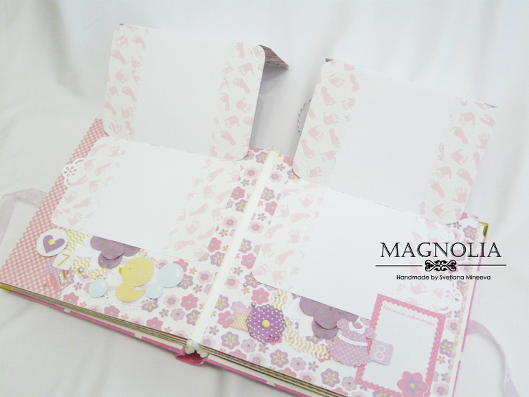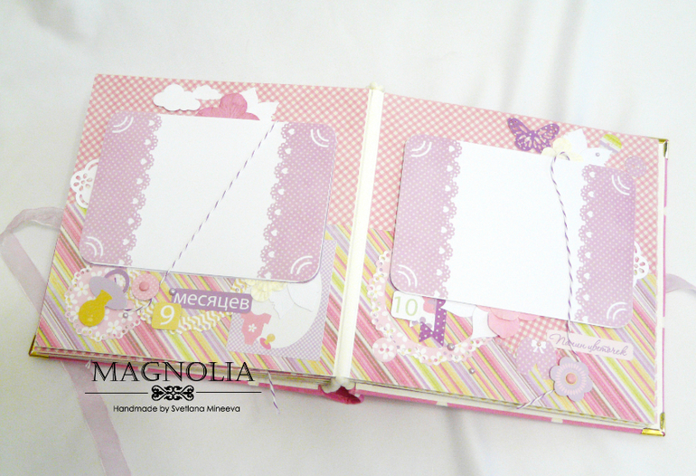 Сегодня я с детским альбомом для малышки Алисы. Формат 20*20 см, объемный бумажный переплет укрепленный тканью, обложка мягкая тканевая из хлопка. Завязывается на шифоновые ленты. В альбоме 8 разворотов или 16 страниц, вмещается 74 фотографии формата 10*15 см.