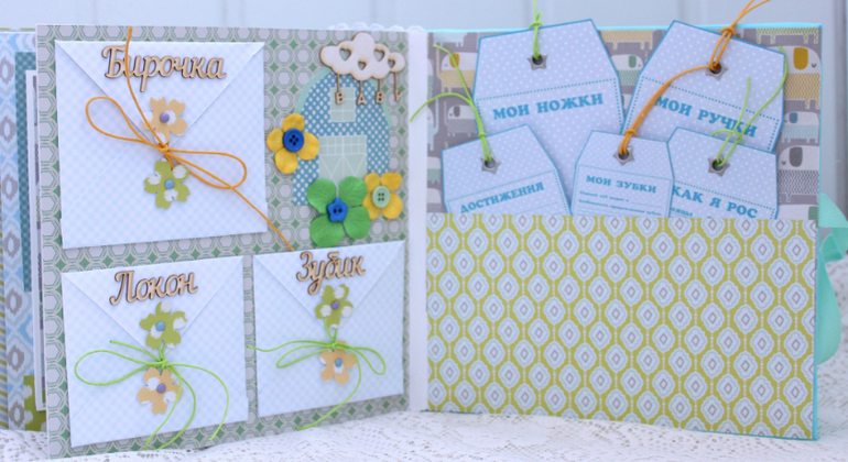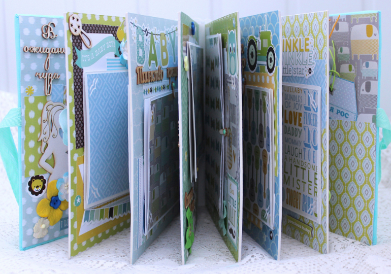 Альбомы ДетскиеВсем привет) Хочу показать вам альбомчик) Именной альбом ручной работы для мальчика формата 20х20, на 14 декорированных страниц, на 70 фотографий. Альбом выполнен по темам: "В ожидании чуда", "Я родился", "Выписка", "Купание", "Таинство крещения", "Мой первый Новый Год", "Сладкие сны", "Sweet baby", "Прогулки", "Время игр", "Наша семья", "Мой первый День Рождения", "Мамины сокровища (конвертики для бирочки,локона и зубика)", "Таблицы роста и достижений ребенка". Принимаю заказы)