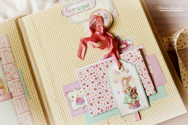 Данный альбом был задуман в розово-желтой палитре и я использовала для этого листы бумаги из пяти коллекций ТМ ScrapMir! Основной набор - это конечно же Little bunny. А вот сможет ли кто-нибудь из вас разглядеть в альбоме листы из остальных четырех коллекций? Пишите в комментариях и самому первому, самому внимательному я обещаю подарок! ;)