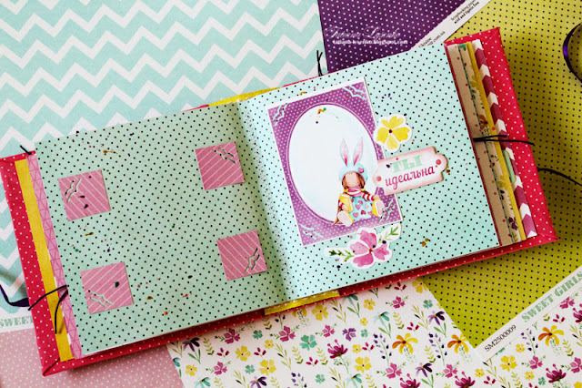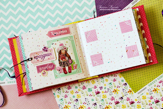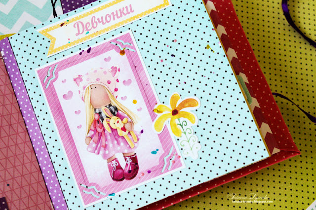 В основе коллекция Sweet girls. В моем распоряжении был один набор двусторонней бумаги из 10 листов 30/30 см (один из которых - карточки), один набор чипборда и один набор высечек.