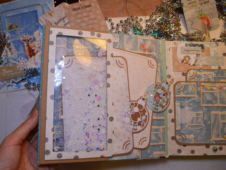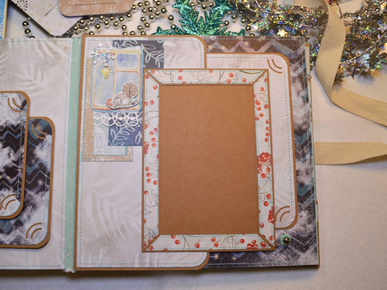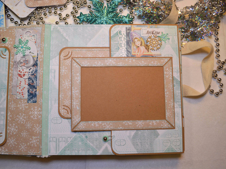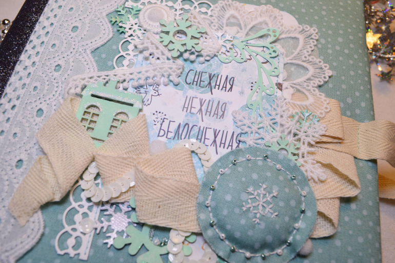 Зимний фотоальбом ручной работы формата 20х20 см. Внутри альбома разместилось 5 разворотов (10 страниц), вмещает в себя 48 фотографий формата 14х9,5 см. Также имеется два кармана и конверт для фотографий, теги для записей. В комплект к альбому прилагается мини-альбом книжного формата на 10 фотографий (14х9,5 см.) Цена: 3000 руб. Такой альбом станет замечательным подарком на Новый год себе и близким. Альбом в наличии и ждёт своего хозяина или хозяйку.