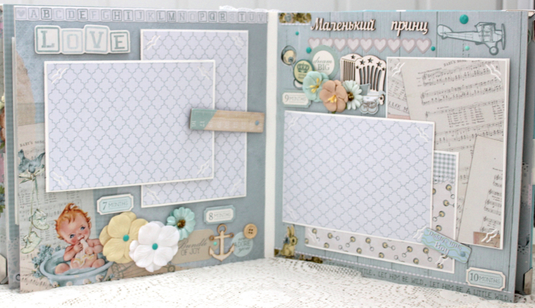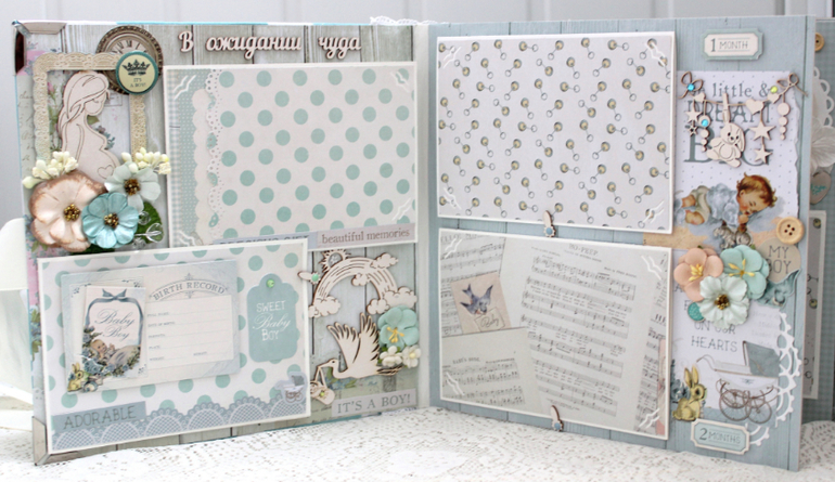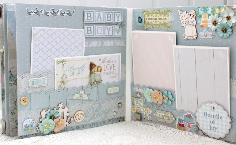 Альбомы ДетскиеВсем привет!) Сегодня покажу вам альбом, который сделала по вдохновению. Большой фотоальбом для новорожденного мальчика. Формат альбома 25х25, 8 декорированных страниц, на 70 фотографий. Альбом выполнен по темам: "В ожидании чуда", "Рождение малыша", "Фотографии от 1 до 12 месяцев", "Новый Год", "День Рождения". Фотоальбом в наличии!
