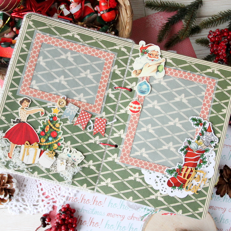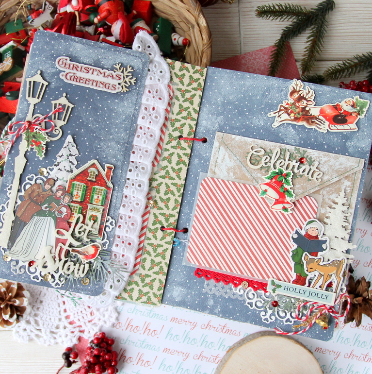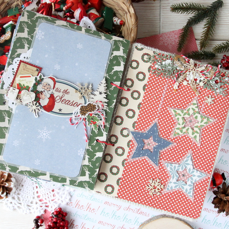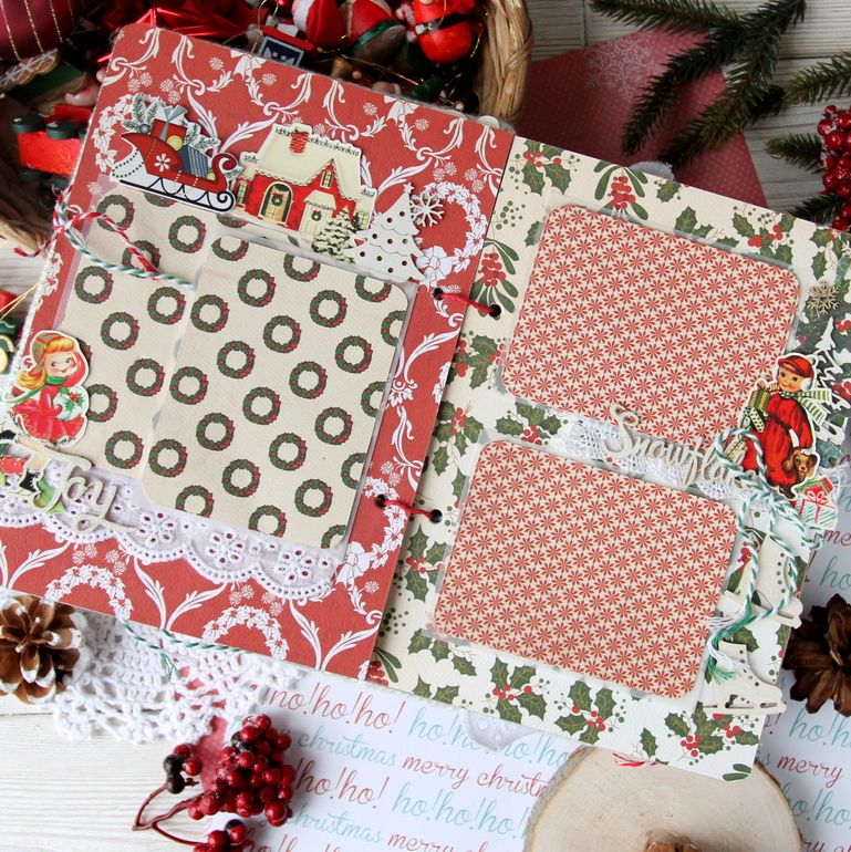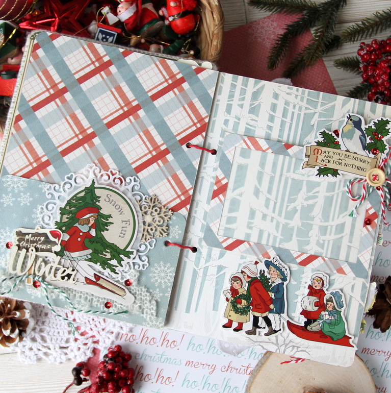 Альбом сделан бумаги "Christmas Wonderland" от Carta Bella. На эту бумагу я засматривалась, когда она только вышла. Но только в этом году я ее себе прикупила. Ну что сказать бумага крутая!!! Работалось с ней в одно удовольствие. Результат порадовал. Смотрим?!