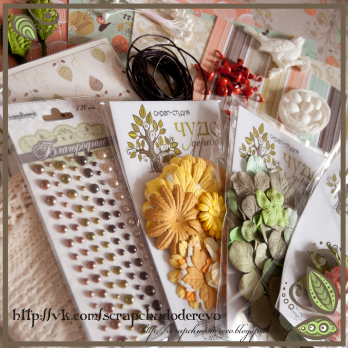 2. Набор материалов, для создания скрап-альбома (в составе: заготовка для альбома 20х20см на пружине, набор бумаги 20х20см из 16 листов, набор кружева, бумажные цветы, декоративный скотч, пластиковые украшения в ассортименте) - в розыгрыше участвуют все купоны с суммой покупки свыше 1000р.