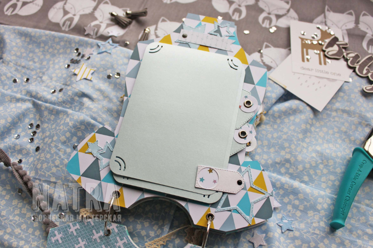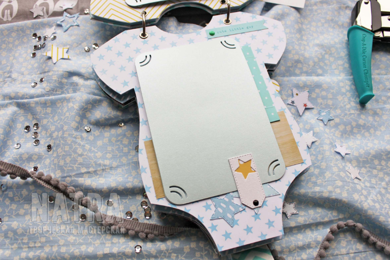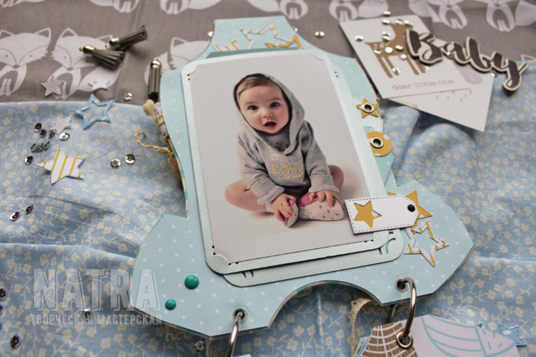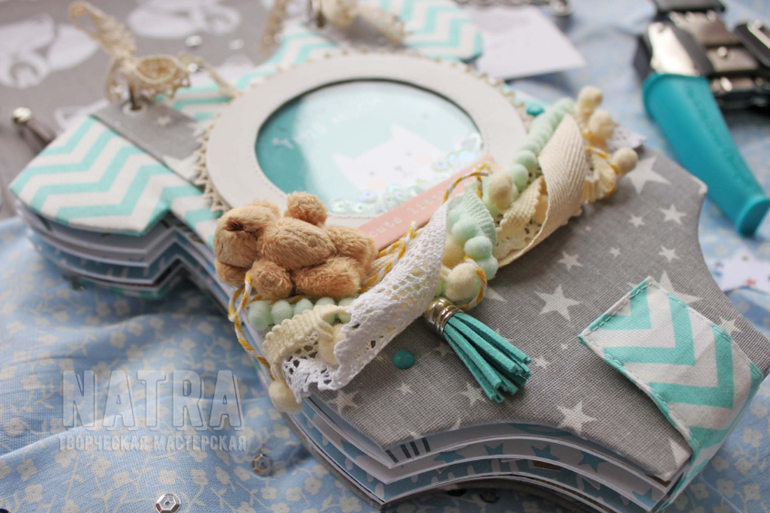 На последней страничке в объемном тканевом кармашке находятся карточки развития и два конвертика (для бирочки и локона).