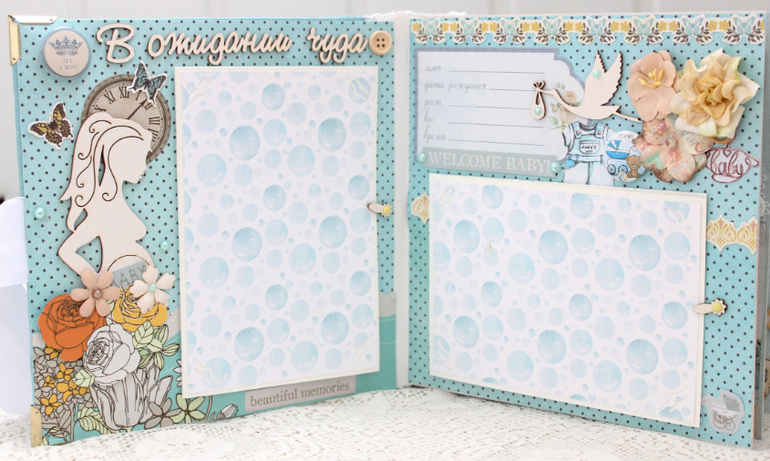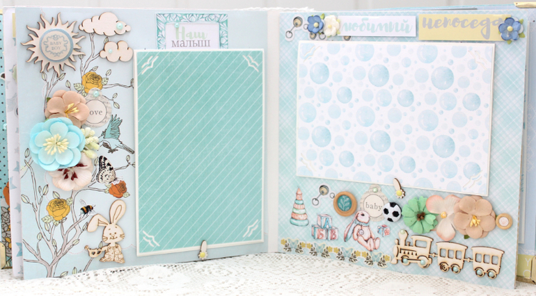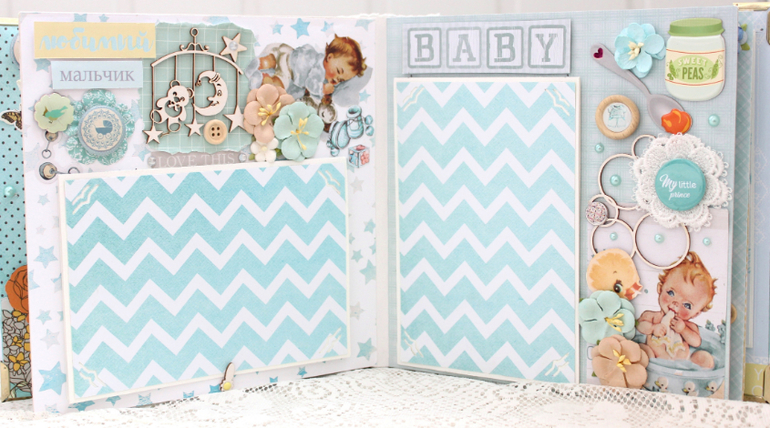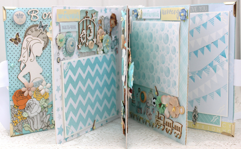 Альбомы ДетскиеВсем привет) Хочу показать вам альбом для мальчика, созданный по вдохновению. Формат альбома 20х20, 8 страниц, на каждой странице множество объемного декора и цветов, рассчитан на 40 фотографий. Альбом выполнен по темам: В ожидании чуда, Рождение малыша, Сладкие сны, Купание, Наш малыш, Любимый непоседа, С Новым Годом!, С Днем Рождения!