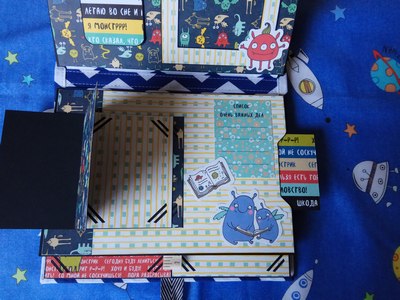 Альбомы ДетскиеДетский интерактивный фотоальбом с веселыми монстриками "БУ" ищет хозяина. Альбом небольшого формата 15х21 см, но вмещает 49 фото формата 9х13 см, включая несколько фото меньшего формата 7,5х10 см (половинка от 10х15), благодаря дополнительным вкладкам, 4 разворота, прошитый переплет. К фотоальбому прилагается лист с веселыми монстриками для вырезания для дополнительного самостоятельного украшения альбома. :) Такой фотоальбом станет прекрасным неординарным подарком ребенку и его родителям!