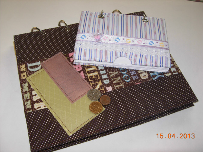 БлокнотыЭто был очередной заказик от моего самого-пресамого любимого клиента (мужа :) ). У его брата был недавно день рождения, а брат у нас коллекционирует монеты, поэтому муж закупил готовые файлы для хранения коллекции, а меня попросил оформить все это в альбом. А еще через пару дней день рождения у жены этого самого брата - ей в подарок сотворился блокнотить мамочки для записи важных вещей связанных с ребенком и не только (у них 2 недели назад родилась доченька).