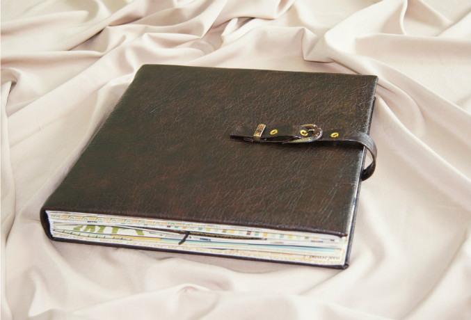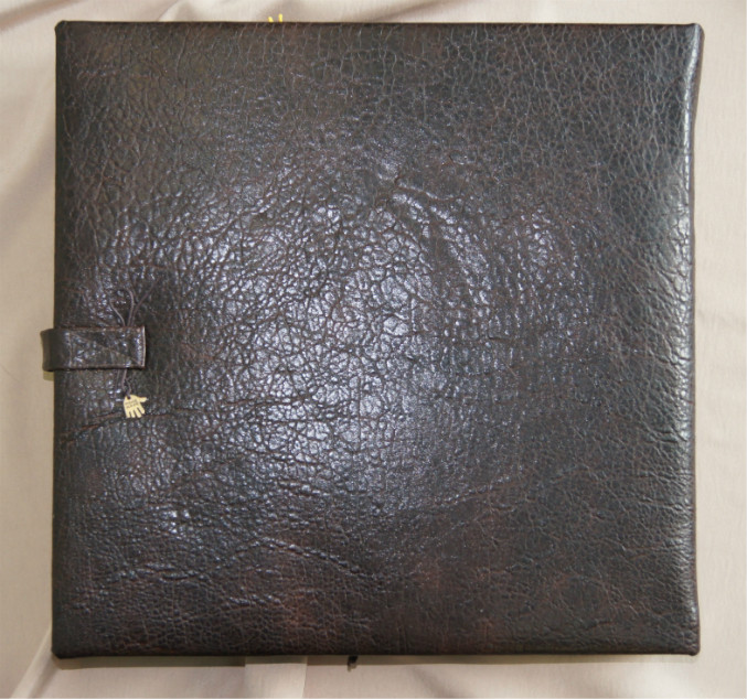 Переплёт Виноградовой, только немножко изменённый. Обложка из кож.заменителя, порывшись в своих запасах ничего подходящего больше не нашла. Как ни прикладывала бумагу, украшения к обложки, ничего не нравилось -вот и решила, что пряжки будет достаточно. Внутри проложен синтепон.