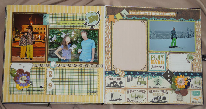 Тяжело он мне дался. Тема для меня новая, долго к нему готовилась, смотрела работы девочек, спрашивала какую бумагу использовать. Да ещё решила использовать машинную строчку - много времени на это ушло и 1,5 катушки ниток!! Бумагу в итоге выбрала американскую THIS&THAT, было 2 набора, но мне его не хватило, поэтому выкручивалась как могла.