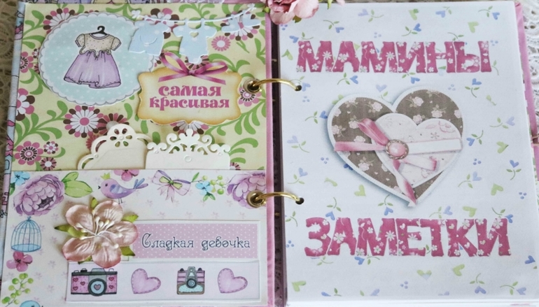 БлокнотыМамин блокнот-бебибук -это уникальный дневник-фотоальбом и одновременно шкатулка для памятных вещей малышки. В таком дневнике-альбоме молодая мамочка может записывать всю важную информацию о своей малышке с момента рождения и пока малыш не пойдет в школу: моя ручка, моя ножка, мои зубки, моё имя,моя достижения по месяцам,здесь можно сохранить на долгую память такие милейшие вещицы как первый локон, первый зубик, бирочка из роддома, различные памятные вещички из путешествий и т.п. записки мамы о первых шагах первых достижениях, любимые стихи, песенки и игры, первые рисунки и первые праздники))))