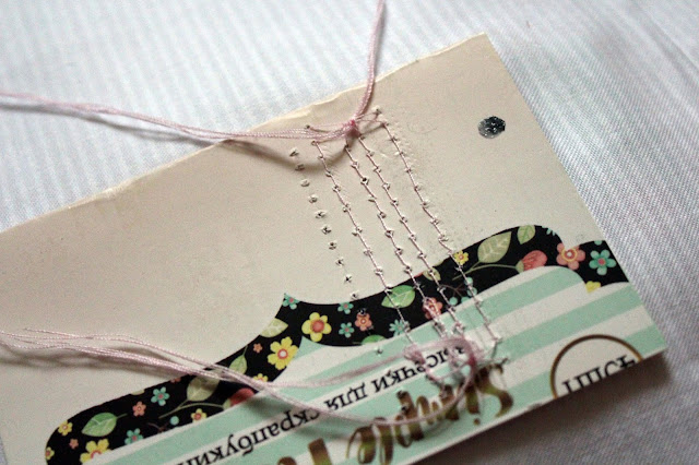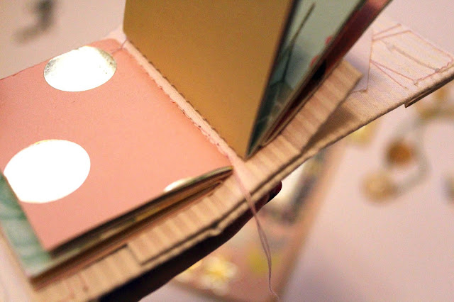 На картонную основу приклеила ткань и поочередно пришила 4 книжечки заранее подготовленных для блока блокнота
