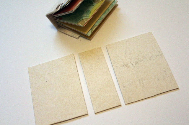 Готовим две стороны обложки форматом 7/5 см и корешок форматом 7/2,5 см из переплетного картона