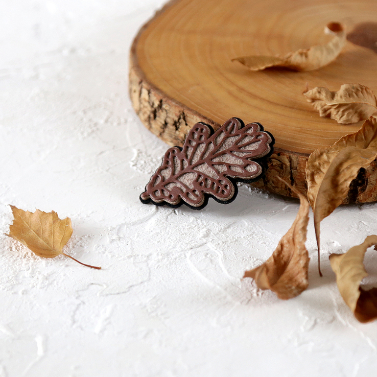 Рамки, магниты, настенные паноДевочки, привет! Доделала себе брошь, еще с прошлого года ее делаю..) смотрите какой листик получился из кожзама и фетра.