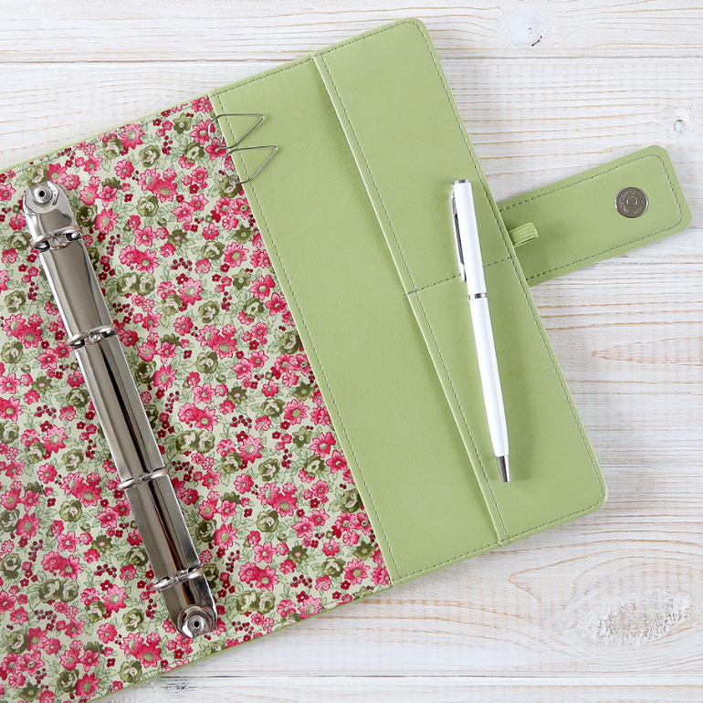 Обложка под планер с кольцевым механизмом на четыре кольца. Блоки под такие кольца можно купить в любом кон. магазине)