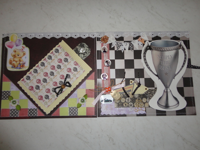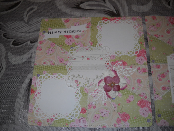Это мой пэчворк. Не рискнула целую страницу делать. С моим-то натяжением нити. Сделала книжечку, там будут карточки с данными роста, веса и успехов малыша. В принтере нет краски, так что карточки будут позже))). Что-нибудь да у меня не так...)))))))