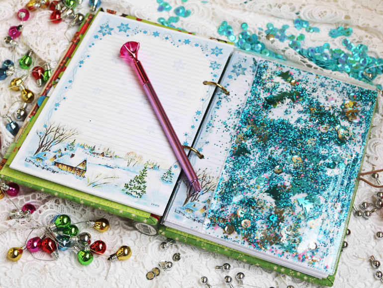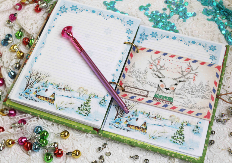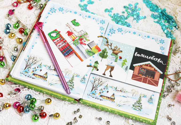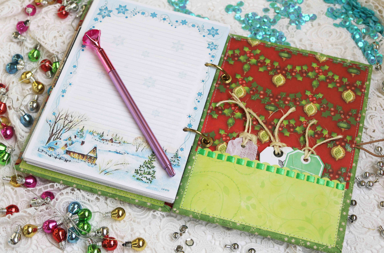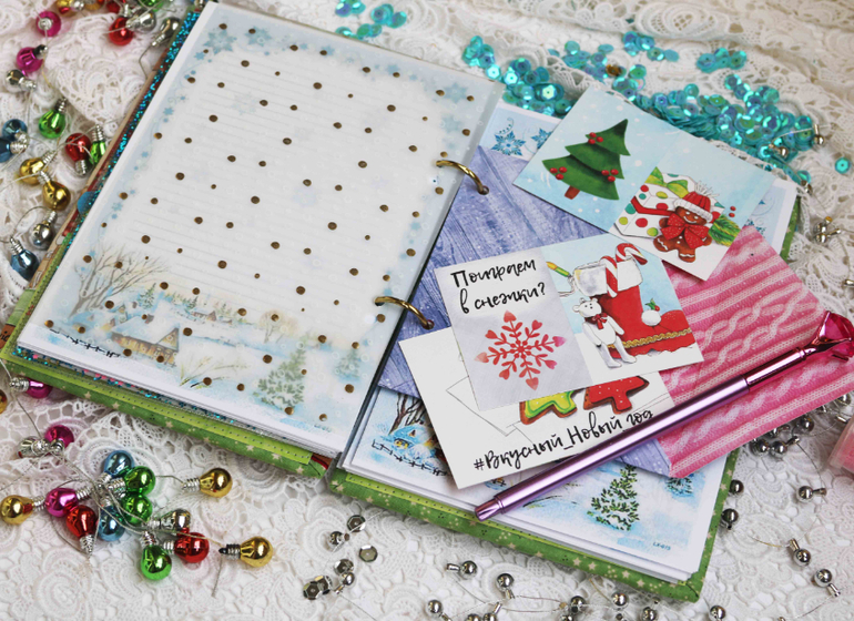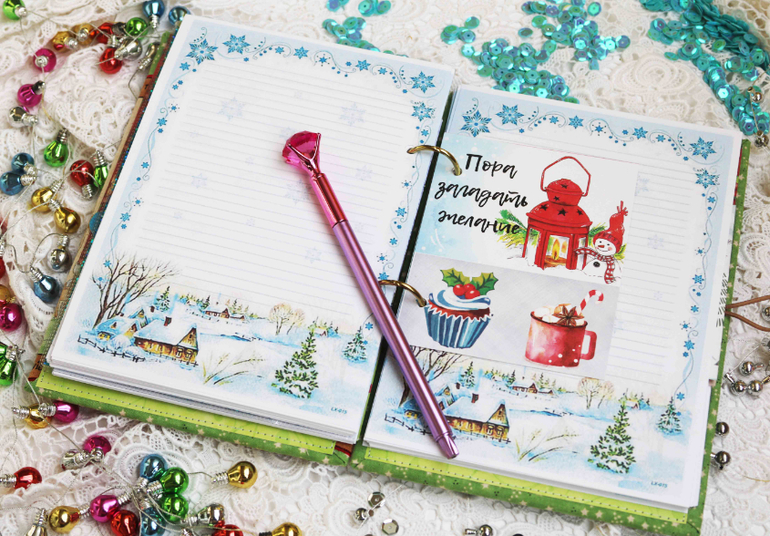 БлокнотыВ него входит: красивая ручка, открытки новогодние, карточки. конверты. наклейки, калька с золотым рисунком, кармашки для важных бумажек, теги, шейкер-антистресс, разделители и много всего интересного)) Дальше много фото: