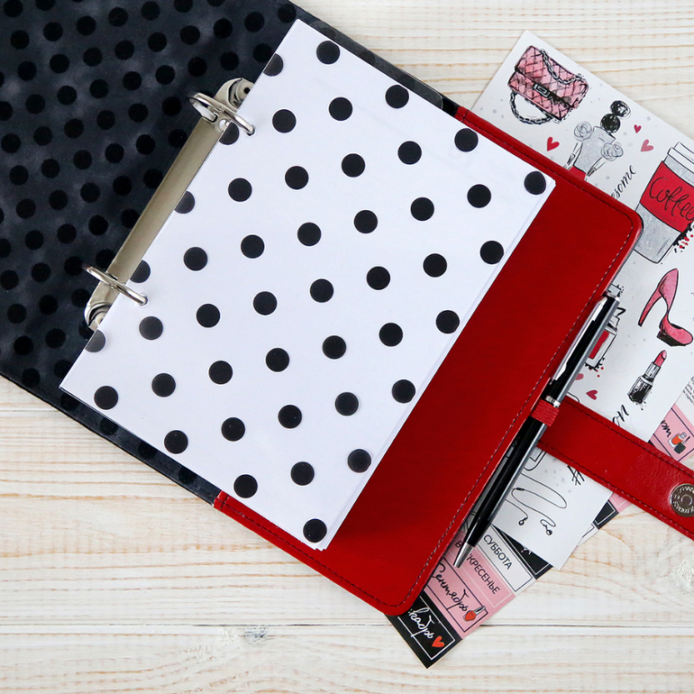 из ацетатного листа - небольшая закладочка, которую будет видно при закрытом блокноте)