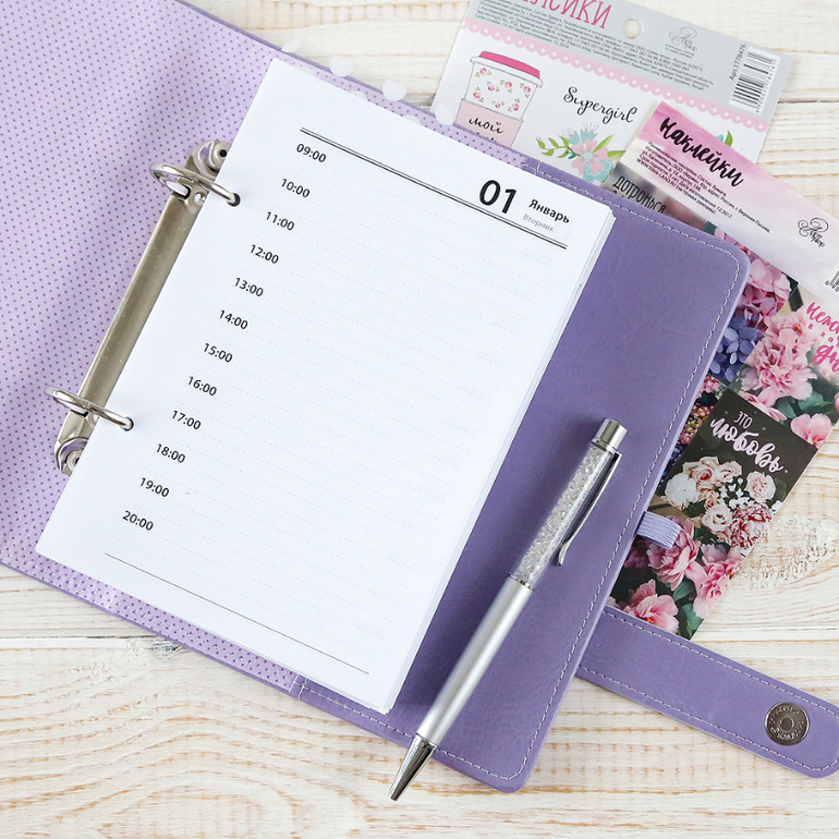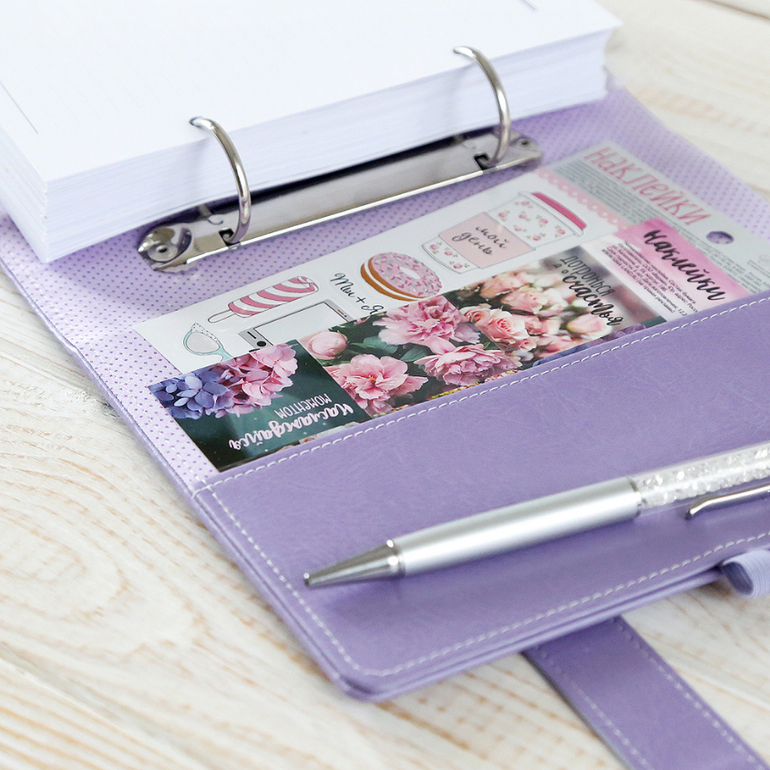 Вместительные кармашки, резиночка для ручки и конечно наклеечки в подарок)