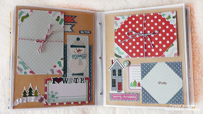 Четвертый разворот, я решила посвятить его зиме, Новогодним и Рождественским праздникам, ведь наверняка у каждого есть очень яркие новогодние фотографии